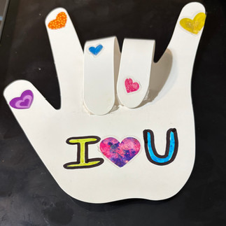 Now you're done! You could hang this on a bulletin board, make a card by gluing the whole hand onto a piece of paper, or give it to someone to say I LOVE YOU!